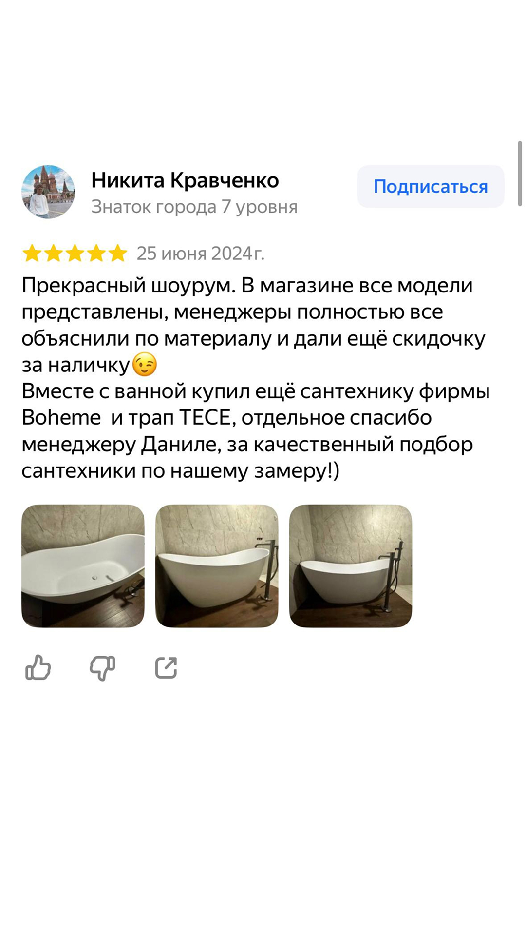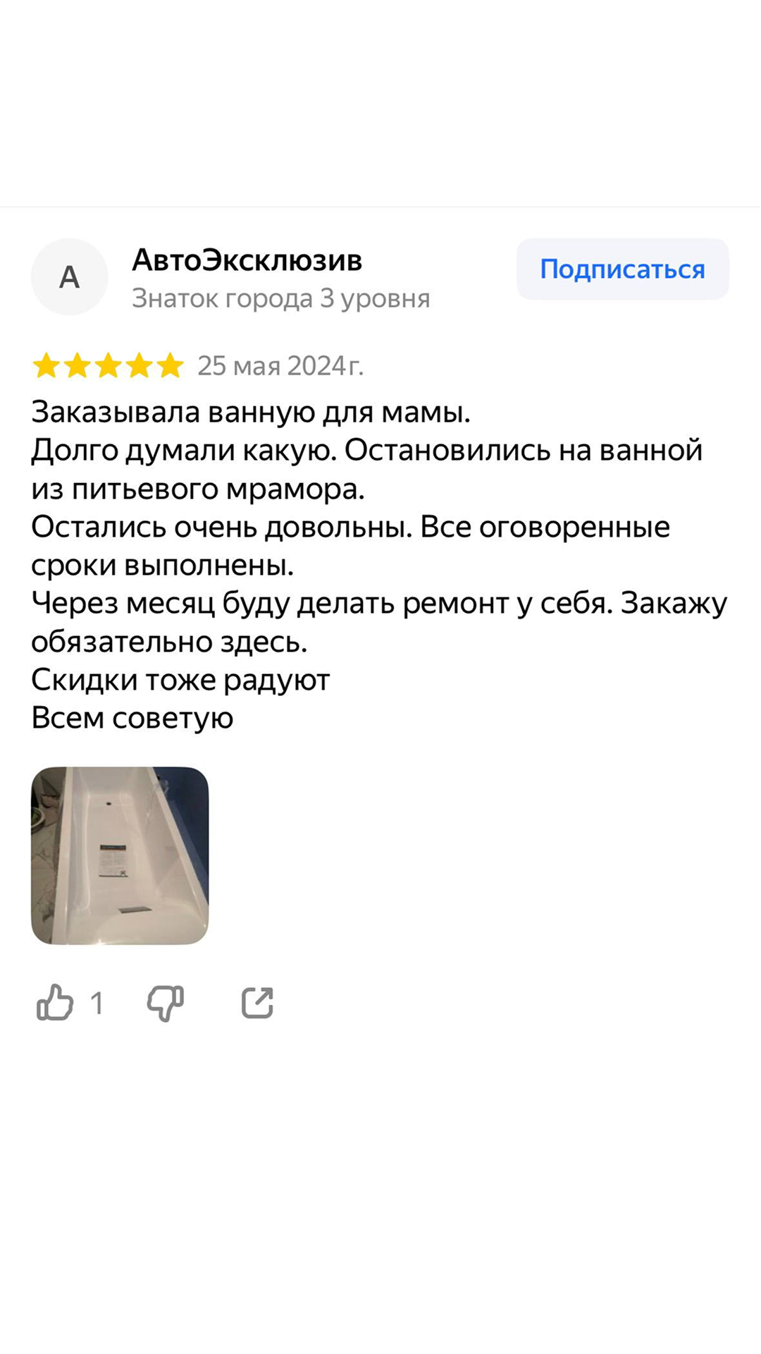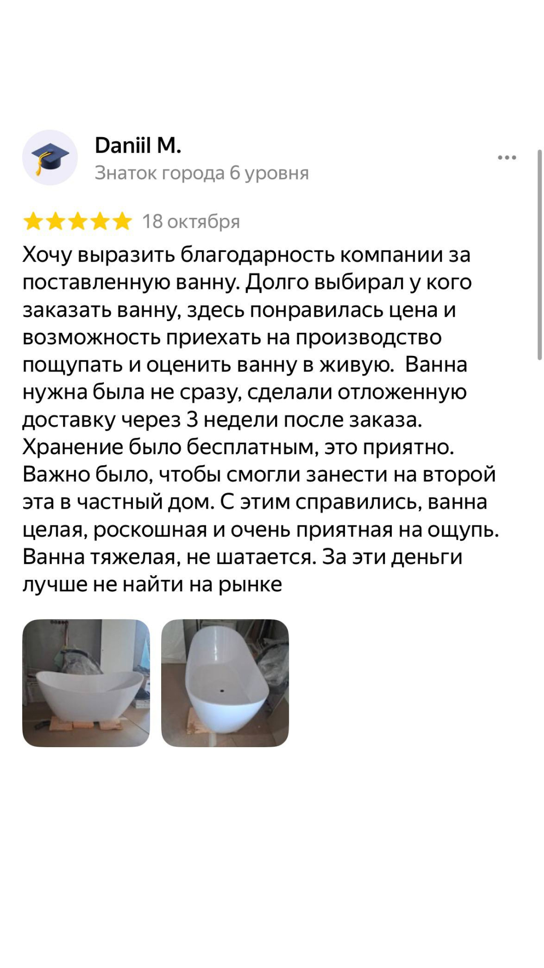 Изготовлена из высококачественного европейского литьевого мрамора, который сохраняет тепло, гасит шум воды и приятен на ощупь.