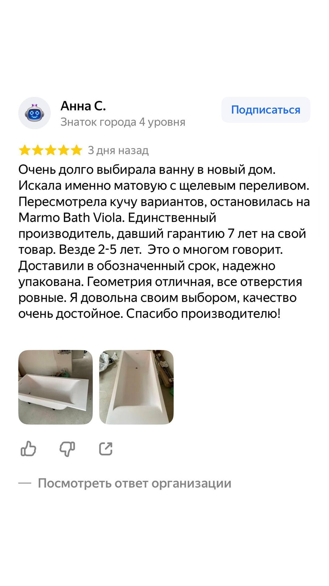 Виола 150х70см — встраиваемая ванна из литьевого мрамора от российского бренда Marmo Bath.